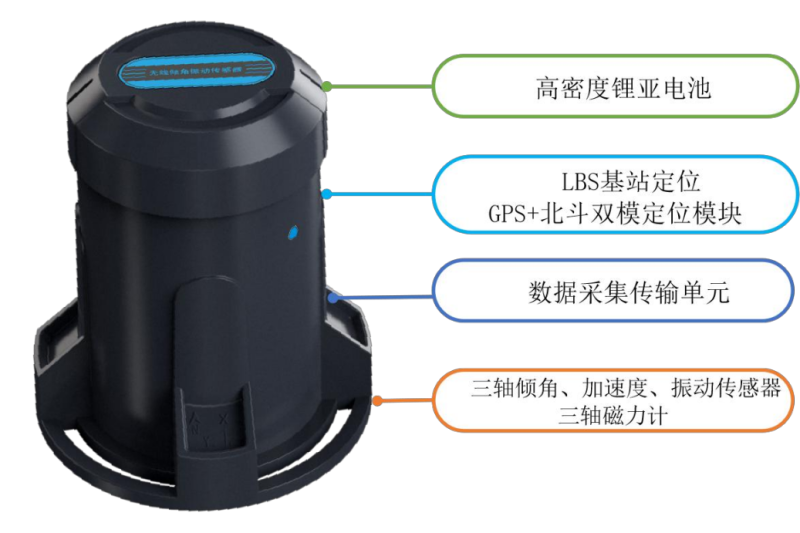 同时采集三轴倾角、倾斜角、方位角、振动频率、振幅、电池电压、环境温度、定位信息等要素,大幅增加采集数据相关性,便于后续数据分析;